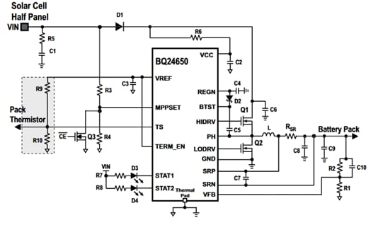 Figure 5: The theBQ24650 is a basic battery-charge controller which implements