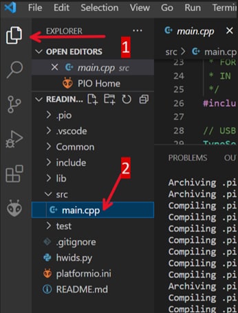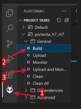 - To run the code, click on the PlatformIO icon on the left-hand side panel. Click Build and